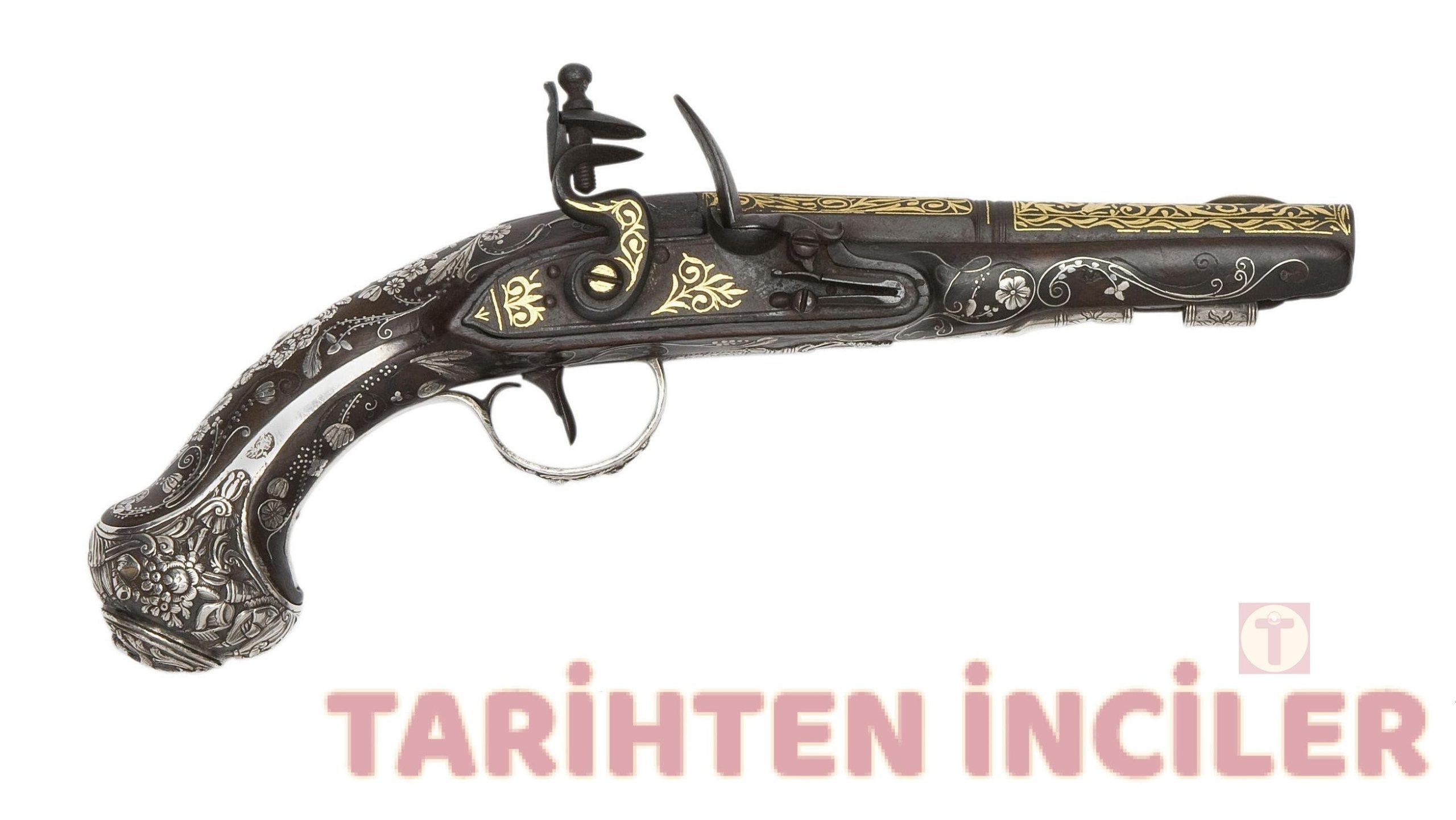 32-Delikli Gümüş Monteli Çakmaklı Tabanca, 19. Yüzyıl (Osmanlı Piştovu, 19.YY)